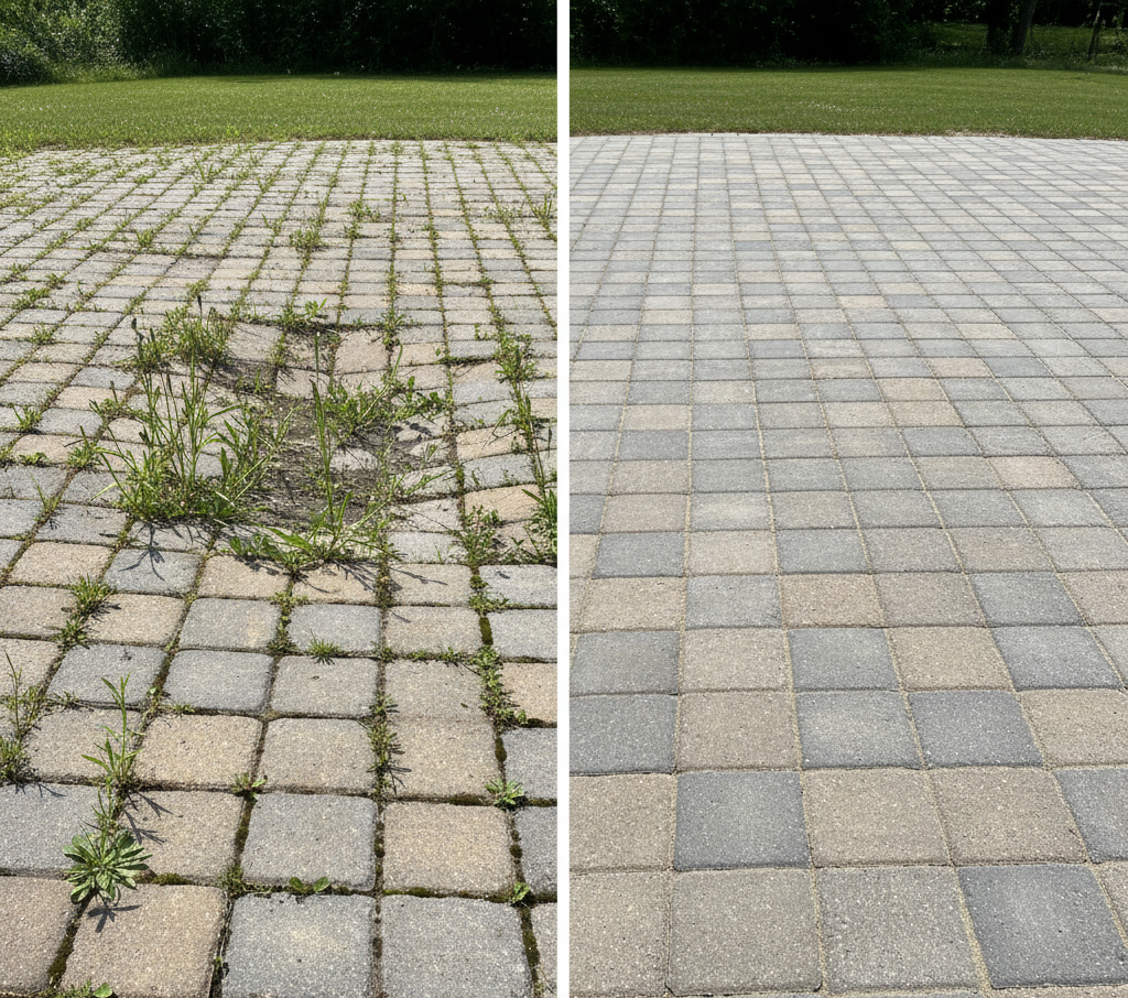 My patio has weeds growing between the pavers. Can you fix that?